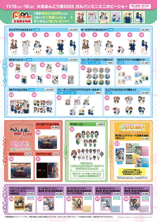 「大洗あんこう祭2025」の開催にあわせて2025 年11月15 日(土)、16 日(日)の2 日間にかけて大洗町現地にて実施する、「ガールズ&パンツァー」シリーズ関連グッズ物販イベント「ガルパンミニミニホビーショー」の、出店社情報を公開!また、バンダイナムコフィルムワークス公式ショップA-on STORE にて同「ガルパンオンラインミニミニホビーショー」が同時開催!
