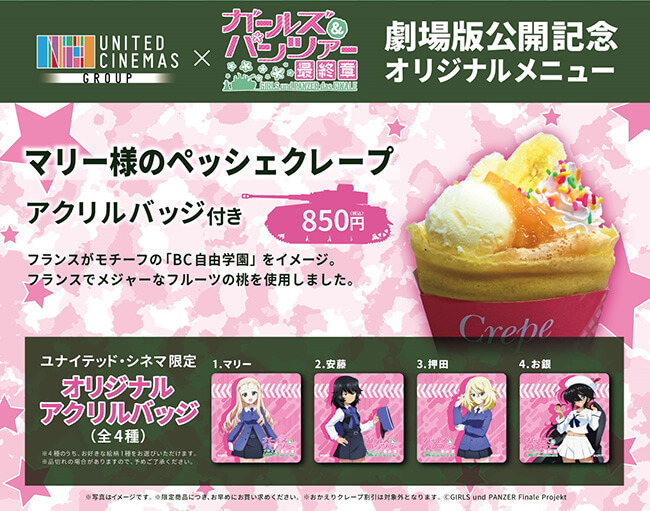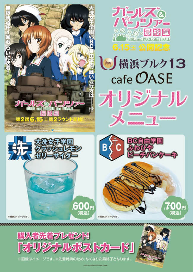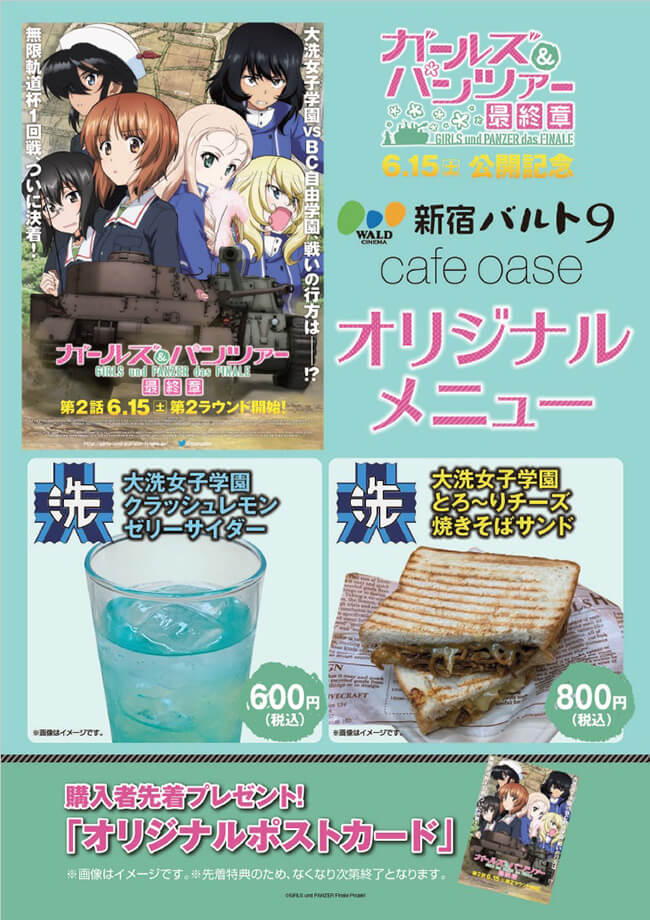 ユナイテッド・シネマ豊洲併設カフェ「Breathe(ブリース)」にて、「ガールズ&パンツァー 最終章」第1話の公開を記念した4種類のドリンク(オリジナルコースター付き)と、戦車ケーキ(オリジナルマウスパッド付き)の販売が決定しました!!いずれも当店でしか手に入らない商品です!ドリンクはテイクアウトも販売致しますので、映画のお供にいかがでしょうか?